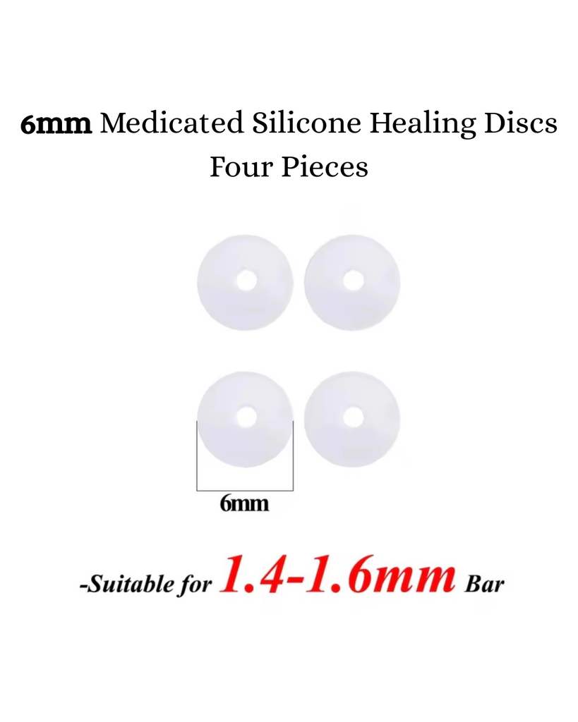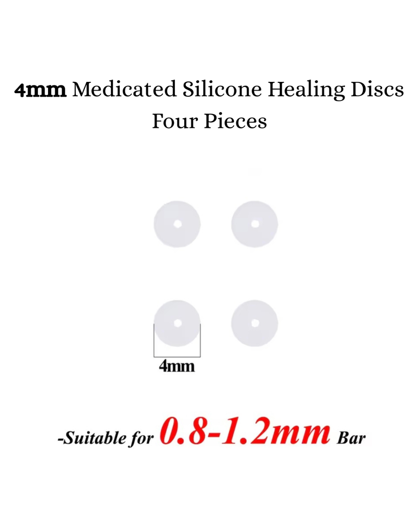 Cleaning: Continue gently cleaning your piercings, once or twice daily. We recommend an Antimicrobial Soap. Clean, rinse well. Gently dry with a tissue or paper towel. It is our Silicone that heals, so please Do not use any oils, pastes or balm etc. on your piercing while wearing the Discs.